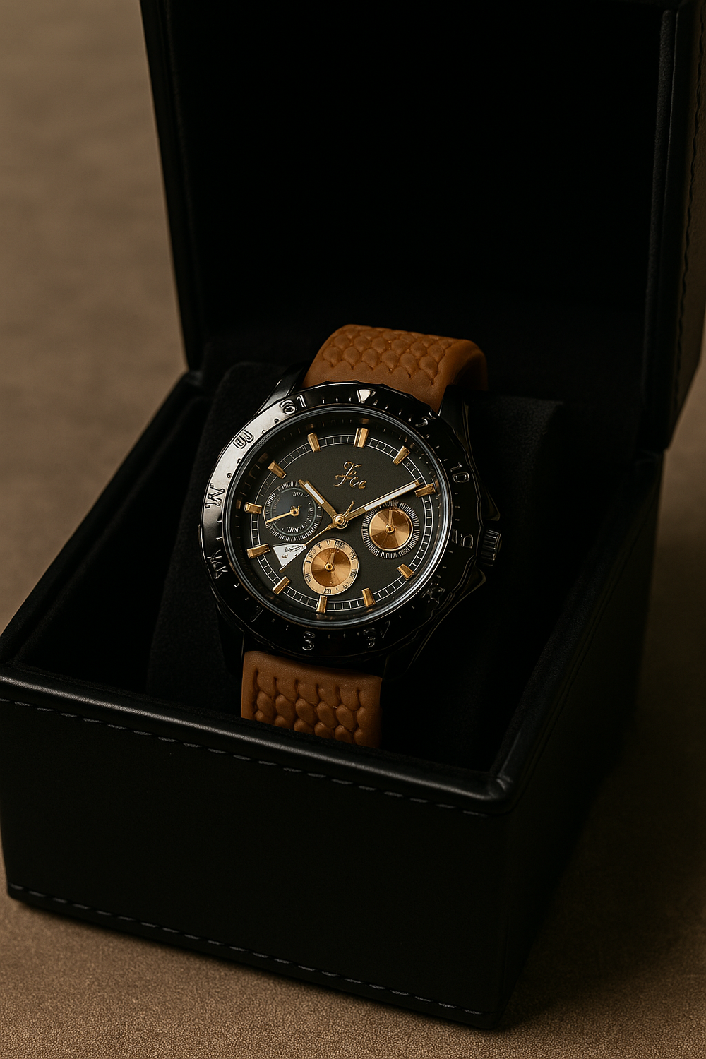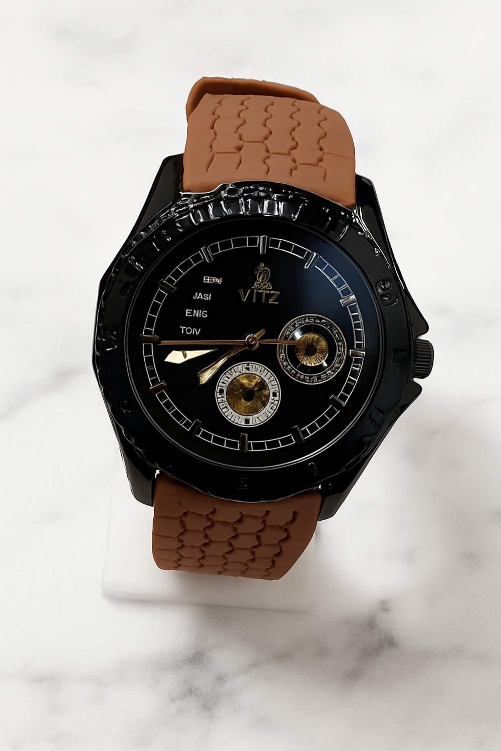 Featuring gold-tone markers and subdials, the Vitz Ember Noir doesn’t just tell time — it tells your story. With multi-function chronograph movement and a finely balanced design, it’s made for those who demand performance with personality.