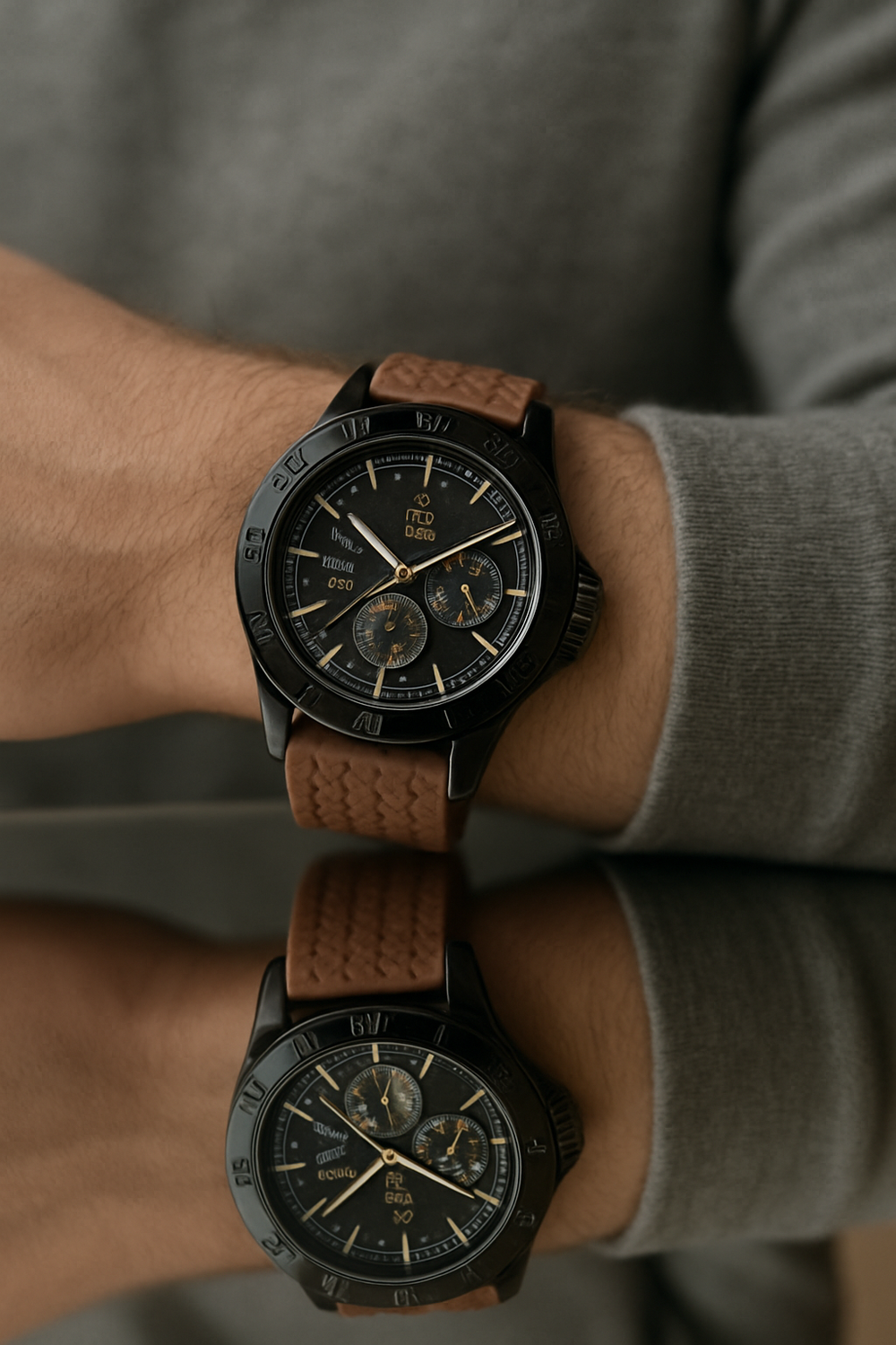 Gold-accented chronograph subdials